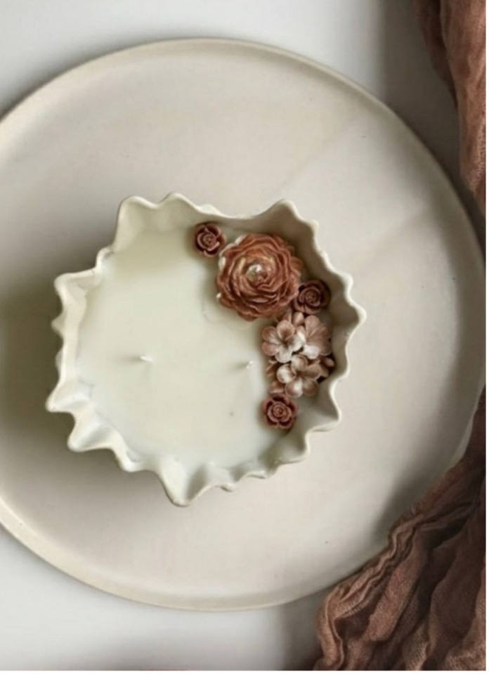 Posebnu pažnju privlače detalji – nježni, ručno rađeni cvjetni motivi od voska koji plutaju na površini, čineći svaku svijeću unikatnim umjetničkim delom.