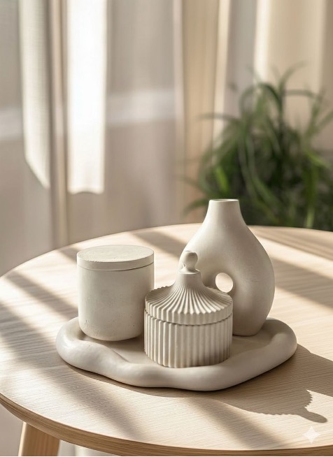 ​Paleta boja je namjerno svedena na tonove sive, slonovače, pijeska i tople bijele. Ova neutralnost omogućava komadima da se neprimjetno uklope u svaki enterijer, istovremeno mu dajući dubinu i karakter. Bilo da je riječ o minimalističkom poslužavniku organskog oblika ili rebrastim vazama koje se igraju sa svjetlošću i sjenkom, Maison D’Ora slavi nesavršenost koja je svojstvena ručnom radu.