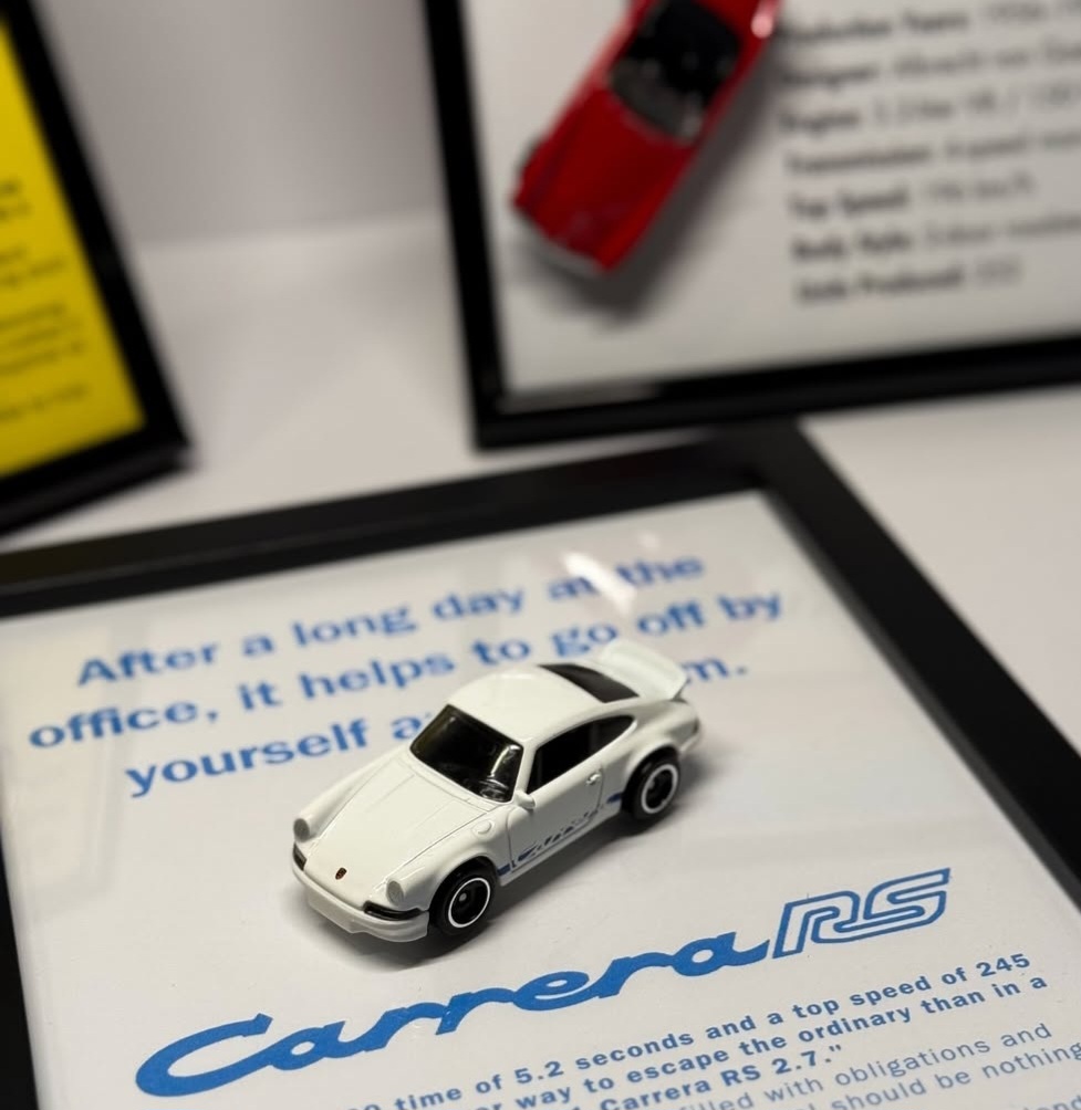 Mala umjetnost, veliki stav Slogan brenda, “Miniature Art. Big Attitude”, savršeno opisuje ono što vidite na prvi pogled. Ovo nijesu obične slike za zid, ovo su pažljivo kurirani 3D kolaži koji slave legende na četiri točka. Od kultnog BMW-a E30 koji “vjeruje da život počinje na 6000 obrtaja”, preko neustrašivog Nissana GT-R, pa sve do bezvremenske elegancije Porschea 911 – svaki ram je mala enciklopedija stila.