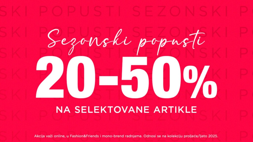 Od četvrtka, 3. jula, svi mogu uživati u popustima na kolekciju proljeće/ljeto 2025. u svim Fashion&Friends i ostalim Fashion Company prodavnicama širom zemlje, kao i putem zvaničnog sajta fashionandfriends.com i mobilne aplikacije. Iskoristite ovo ljeto da se obučete u vrhunske brendove, jer do sada nijesu bili pristupačniji.